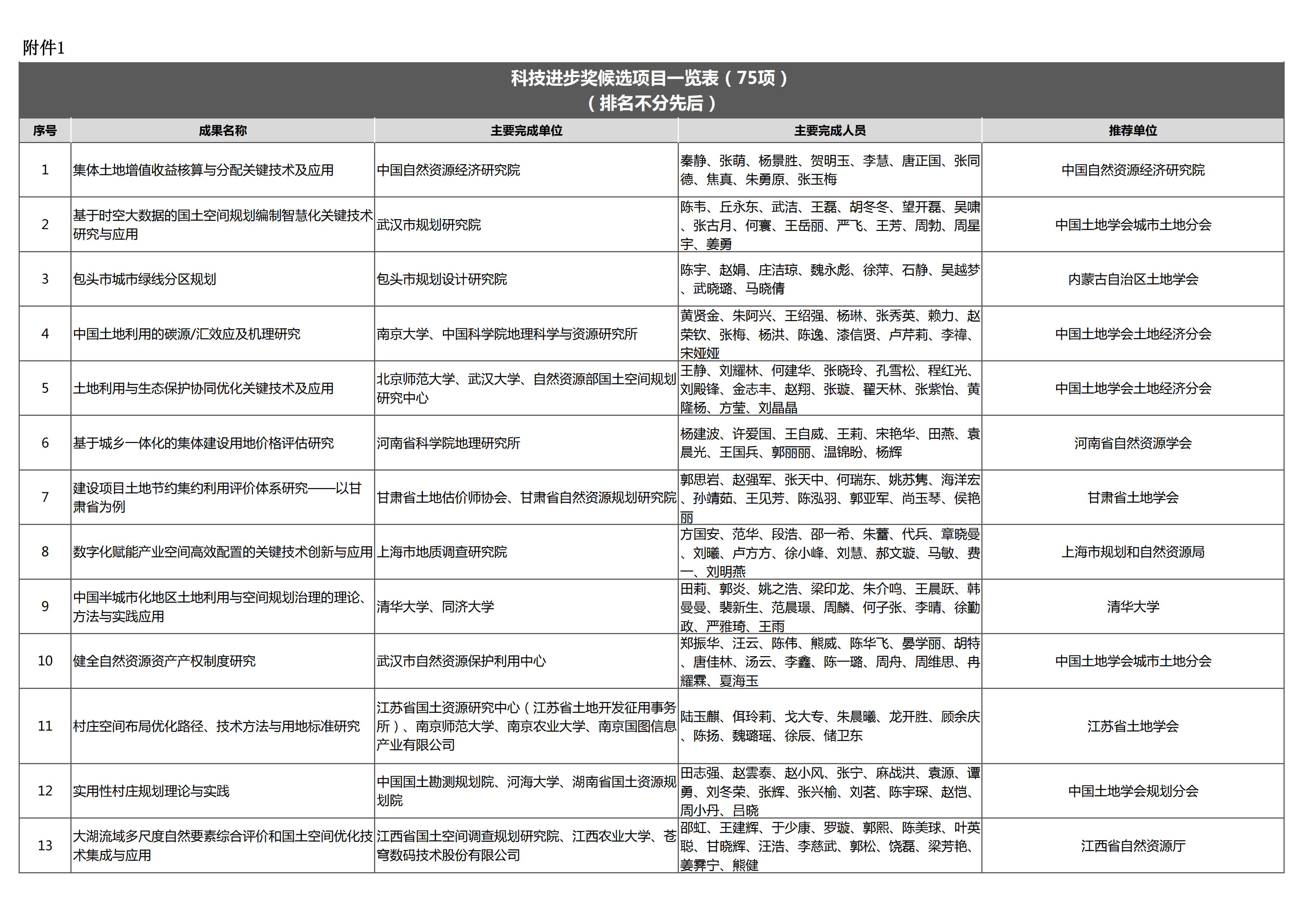 公示|2022年度自然资源科学技术奖(土地学会评审组)申报项目公示