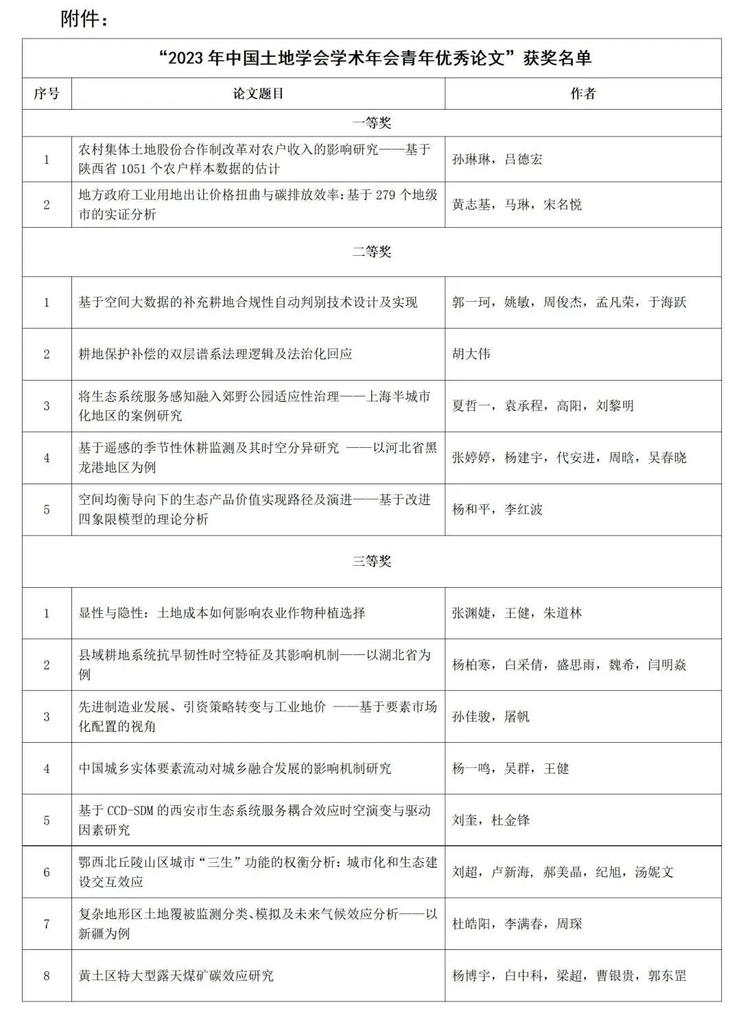 通知|关于表彰2023年中国土地学会学术年会青年优秀论文的通知