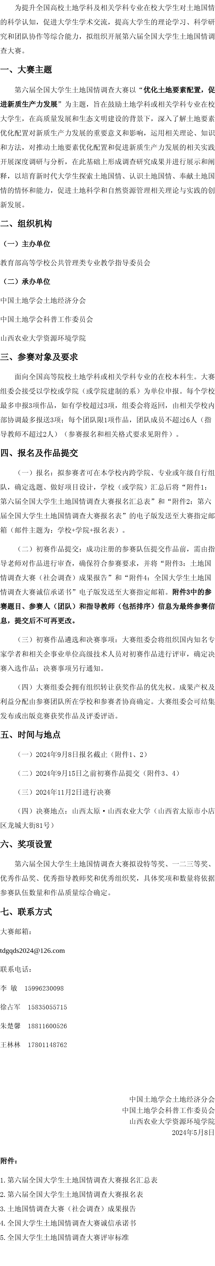 通知|关于举办第六届全国大学生土地国情调查大赛的通知(第1号)