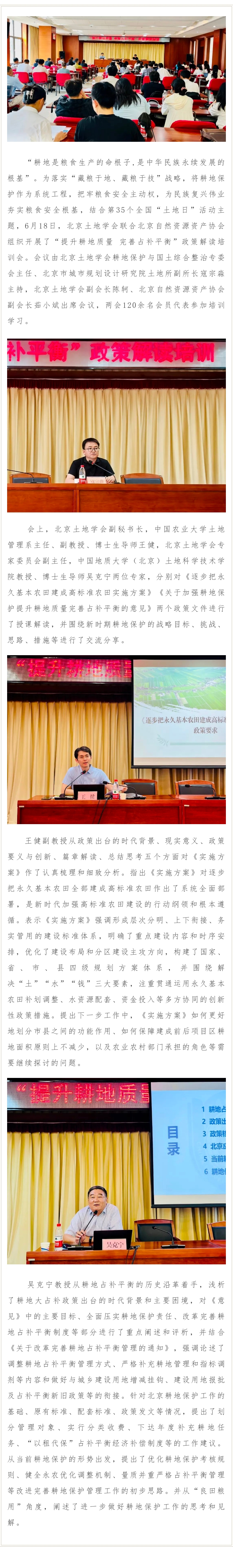 北京土地学会:举办 “提升耕地质量 完善占补平衡” 政策解读培训会